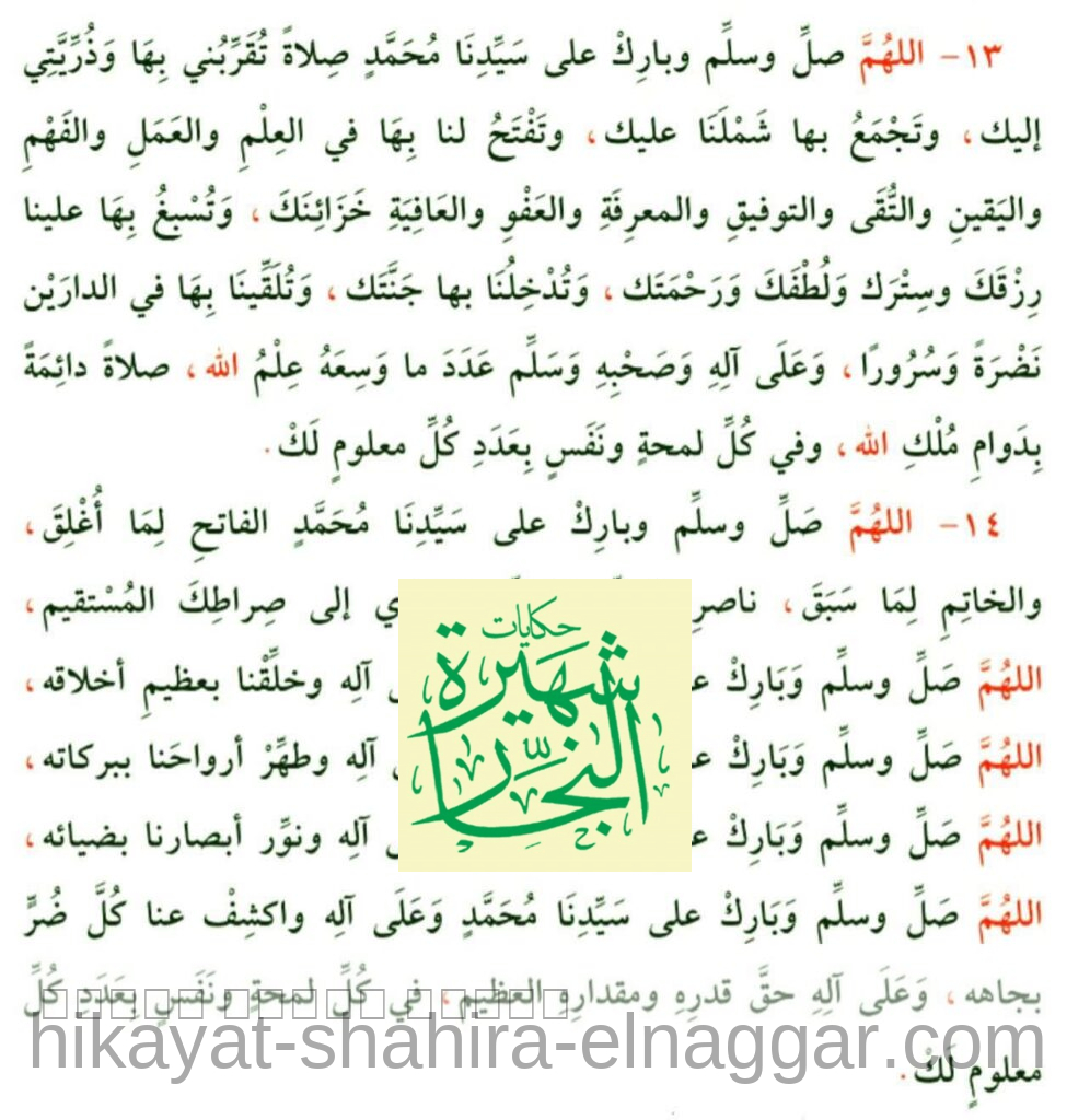 اللَّهُمَّ صَلِّ عَلَى سَيِّدِنَا مُحَمَّدٍ صَلَاةً تَسْتَجْلِبُ نَصْرَكَ وَتُمِدِدْنَا بِمَدَدِ قُدْرَتِكَ وَتَسُوقُ غَضَبَكَ عَلَى أَعَادِيكَ